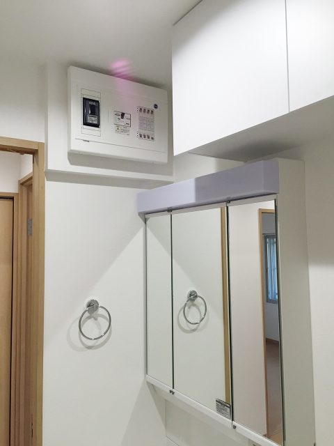 限られたスペースの洗面所へ吊戸棚設置・ブレーカーを移設